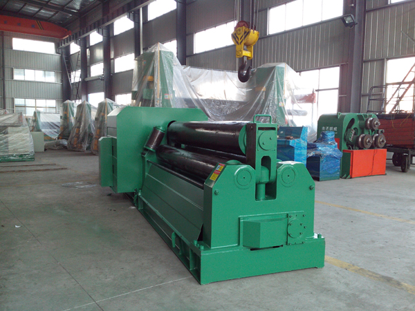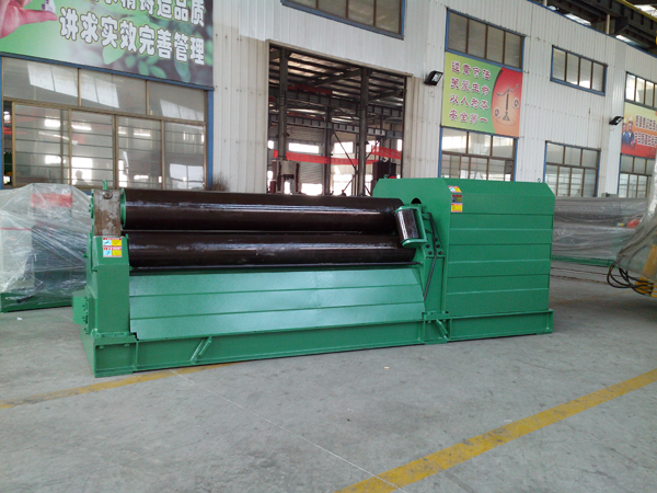 總述: 該機屬于三輥對稱式卷板機,用于常溫狀態(tài)下將低碳鋼,低合金鋼卷成圓筒形。上輥可以垂直升降。滾圓時通過電機、減速機帶動兩下輥進行。由于下輥標高不變,所以便于進料和操作。 本機是鍋爐、造船、石油化工、電機、水泥以及其他制造等行業(yè)的必備設備。本機結構緊湊,操作方便,是我國目前廣泛應用的中小型卷板設備。 二、設備的主要技術參數(shù) 規(guī)格型號 | 單位 | W11—16×2500 | 型式 | | 機械對稱 | 最大板寬 | mm | 2500 | 輥子工作長度 | mm | 2550 | 滿載最大卷板厚度 | mm | 16 | 滿載最小卷板厚度 | mm | 6 | 板材屈服極限 | Mpa | 245 | 上輥直徑 | mm | ¢280 | 下輥直徑 | mm | ¢240 | 兩下輥中心距 | mm | 360 | 滿載最小直徑 | mm | ¢700 | 卷板速度 | m/min | 約5 | 主電機功率 | KW | 11 | 升降電機功率 | KW | 7.5 | 注:該機以245Mpa為設計標準的產品,如有參數(shù)改動,諒不另行通知。 |